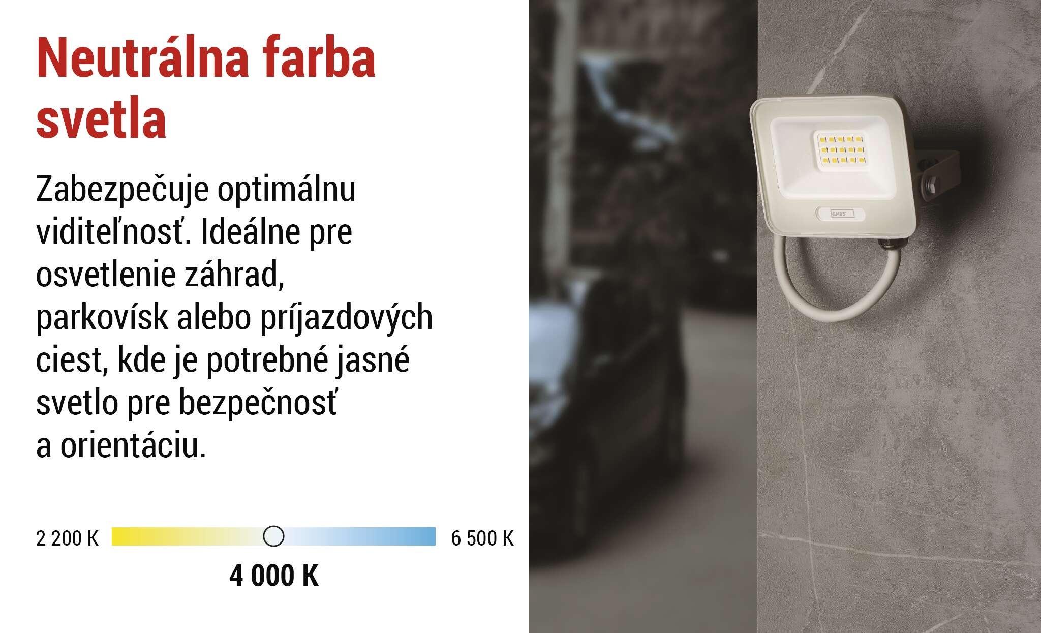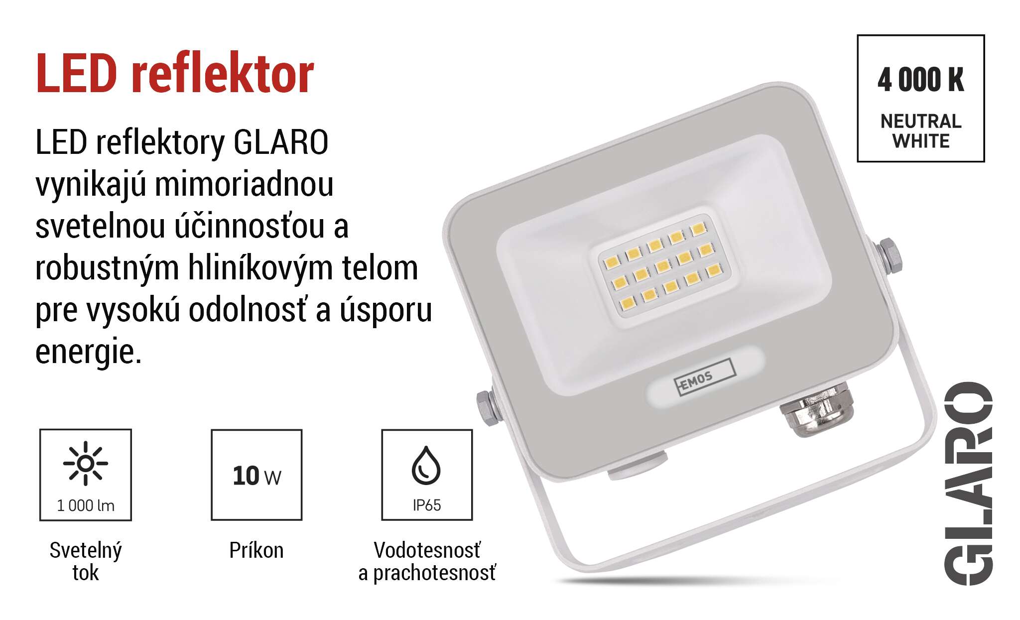LED reflektor GLARO 10W, biely, IP65, 1000 lm, neutrálna biela