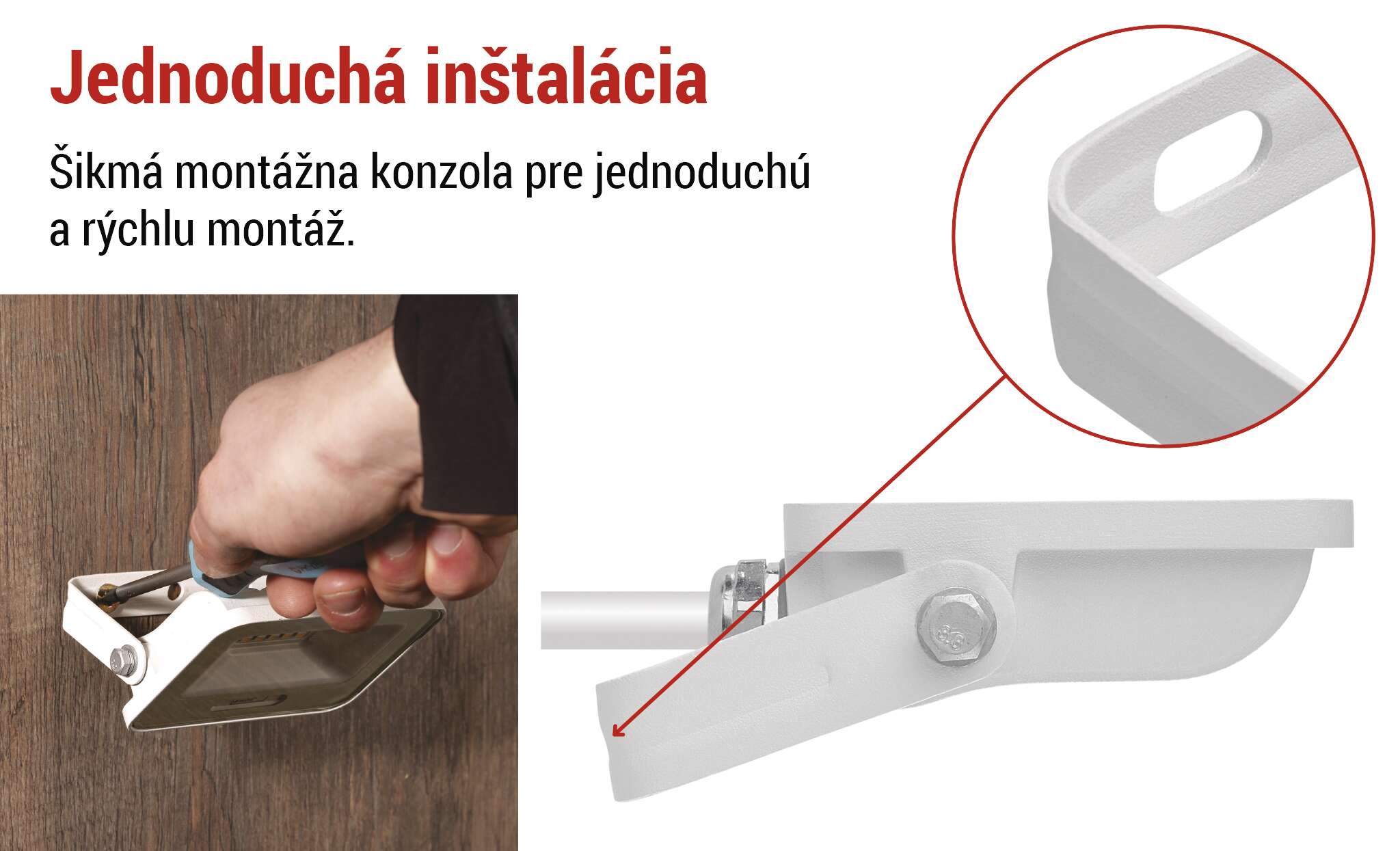 Reflektory GLARO sú navrhnuté s praktickou šikmou montážnou konzolou, ktorá umožňuje rýchlu a pohodlnú montáž na stenu, fasádu alebo iný podklad. Vďaka možnosti nastaviť uhol svetla presne podľa potreby môžete svetlo nasmerovať tam, kde je najviac potrebné, bez potreby zložitého vŕtania alebo nastavovania. Jednoduchá inštalácia šetrí čas a námahu a robí zo svietidla GLARO ideálnu voľbu pre domáce inštalácie.