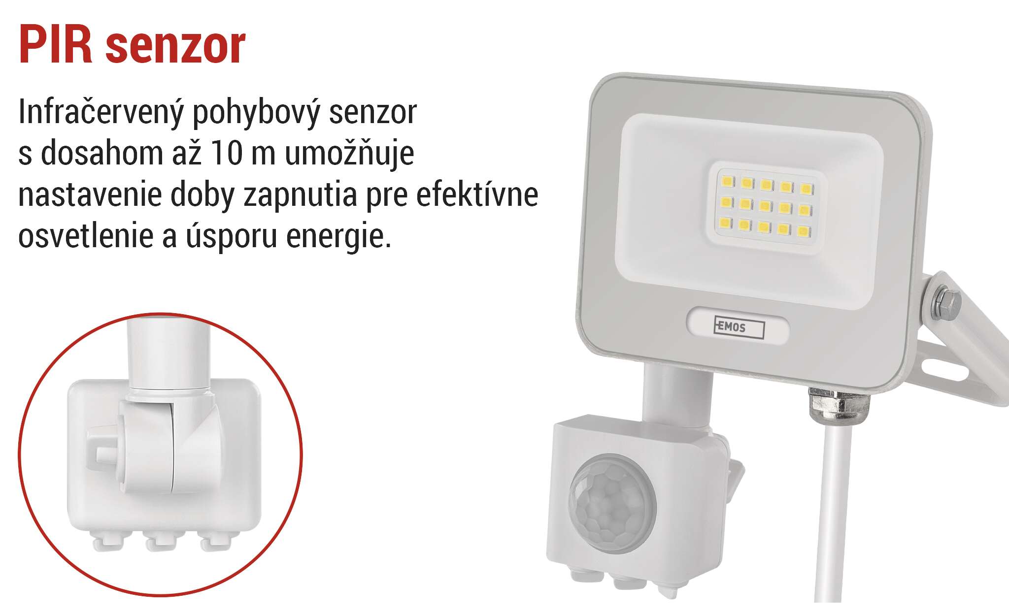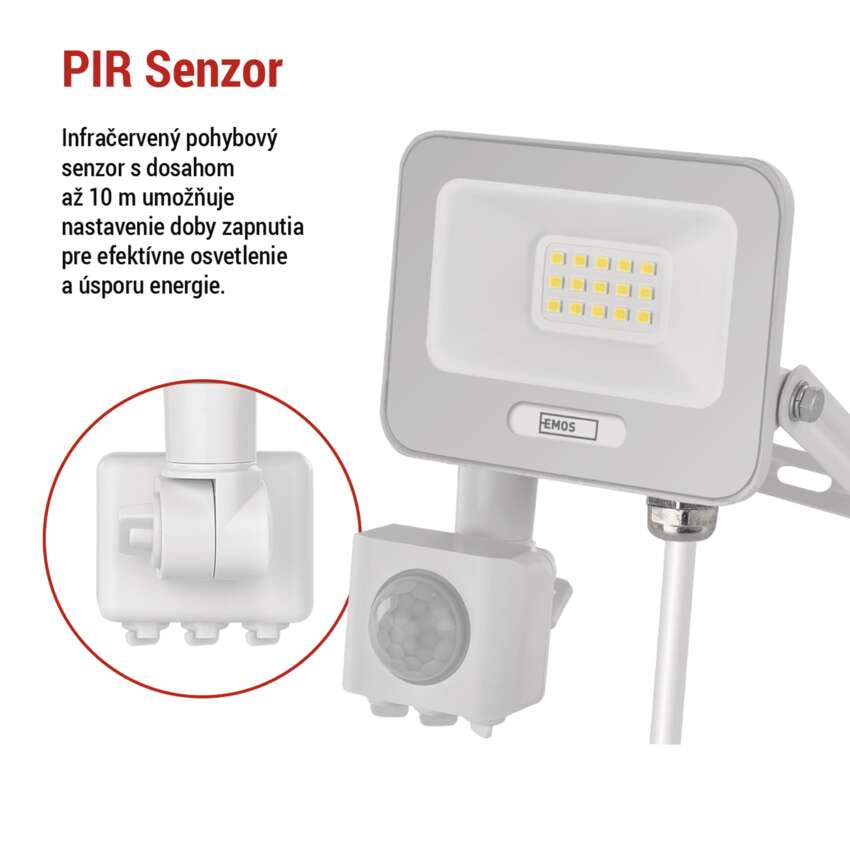 LED reflektor GLARO s pohybovým čidlom, 10 W, biely, IP54, 1000 lm, neutrálna biela