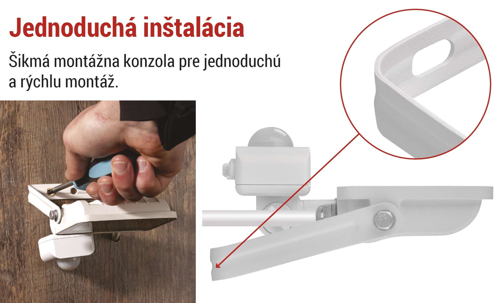 PIR reflektory GLARO sú navrhnuté s praktickou uhlovou montážnou konzolou, ktorá umožňuje rýchlu a pohodlnú inštaláciu na stenu, fasádu alebo iný podklad. Vďaka možnosti nastavenia uhla osvetlenia presne podľa potreby môžete svetlo nasmerovať tam, kde je najviac potrebné, bez potreby zložitého vŕtania alebo nastavovania. Jednoduchá inštalácia šetrí čas a námahu a robí zo svietidla GLARO ideálnu voľbu pre domáce inštalácie.