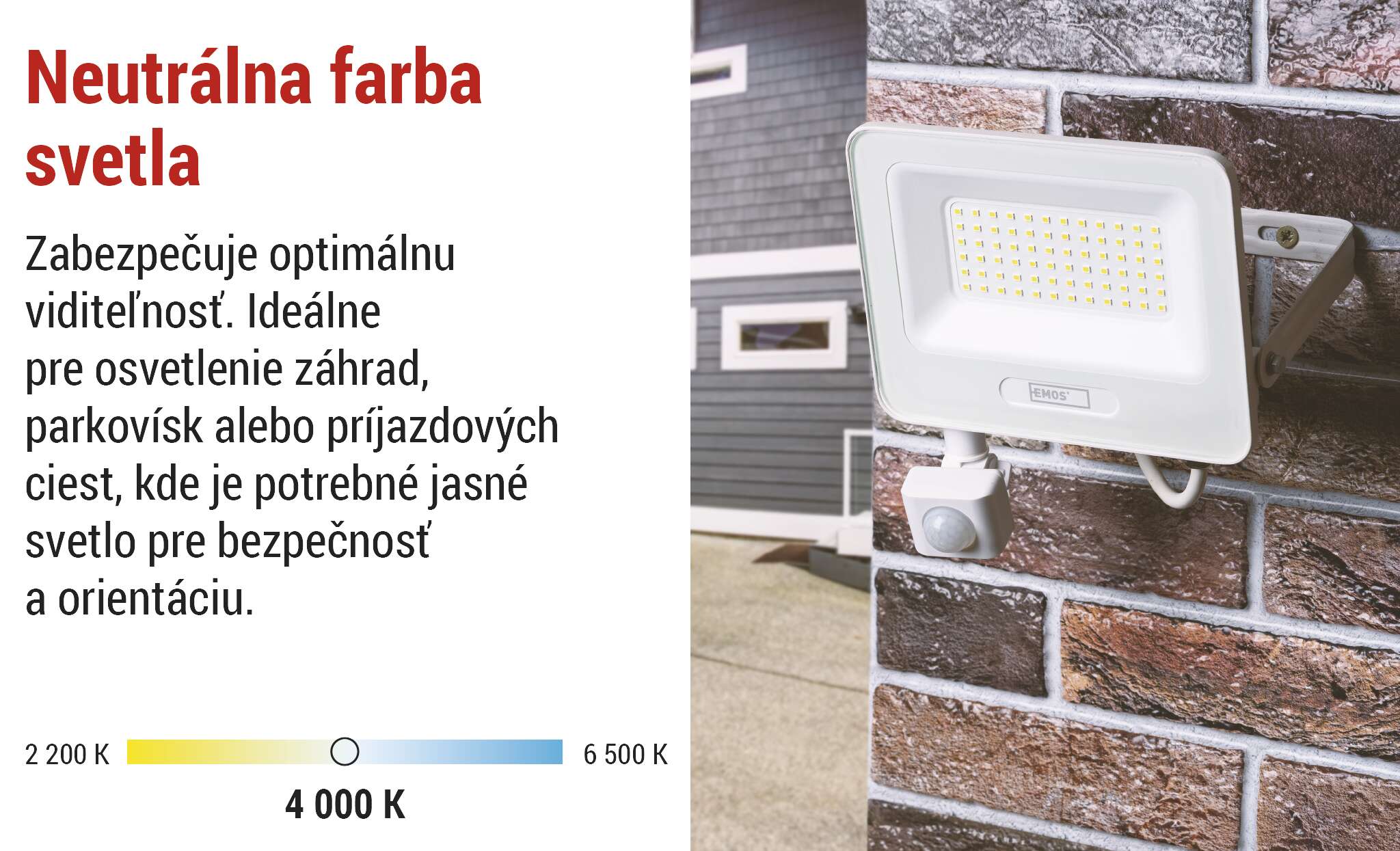 LED reflektor GLARO s pohybovým čidlom, 20 W, biely, IP54, 2000 lm, neutrálna biela