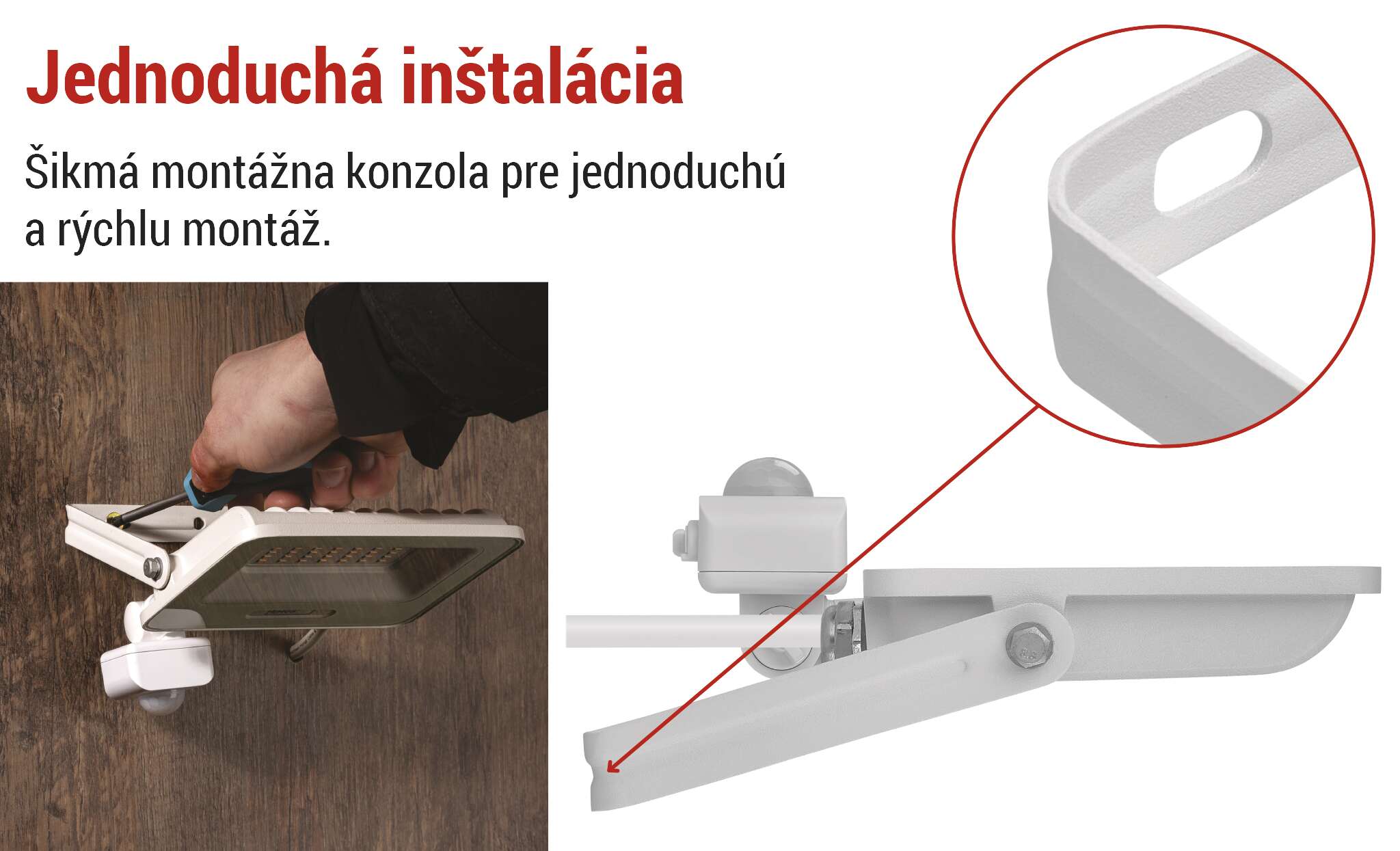 PIR reflektory GLARO sú navrhnuté s praktickou uhlovou montážnou konzolou, ktorá umožňuje rýchlu a pohodlnú inštaláciu na stenu, fasádu alebo iný podklad. Vďaka možnosti nastavenia uhla osvetlenia presne podľa potreby môžete svetlo nasmerovať tam, kde je najviac potrebné, bez potreby zložitého vŕtania alebo nastavovania. Jednoduchá inštalácia šetrí čas a námahu a robí zo svietidla GLARO ideálnu voľbu pre domáce aj profesionálne inštalácie.