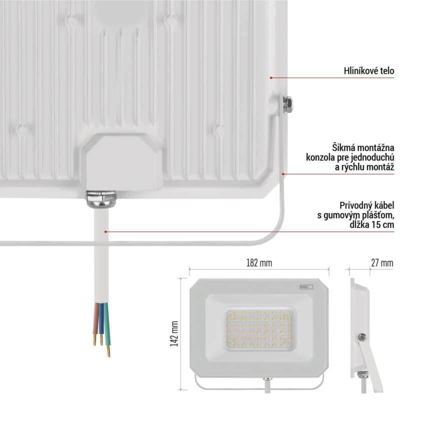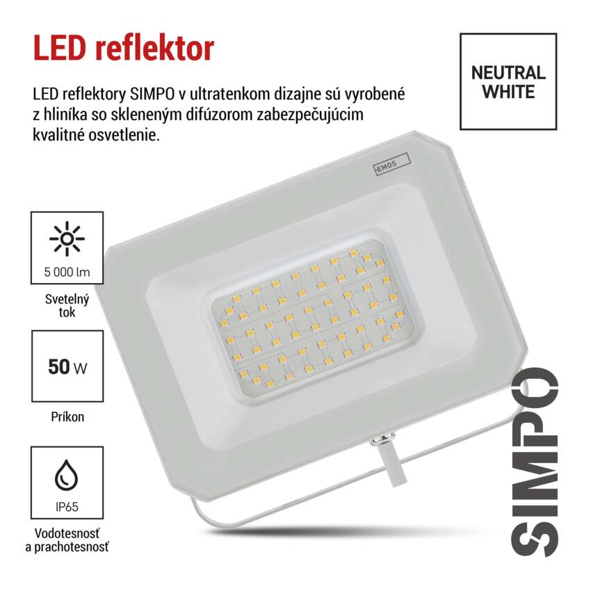 LED reflektor SIMPO, 50 W, biely, IP65, 5000 lm, neutrálna biela