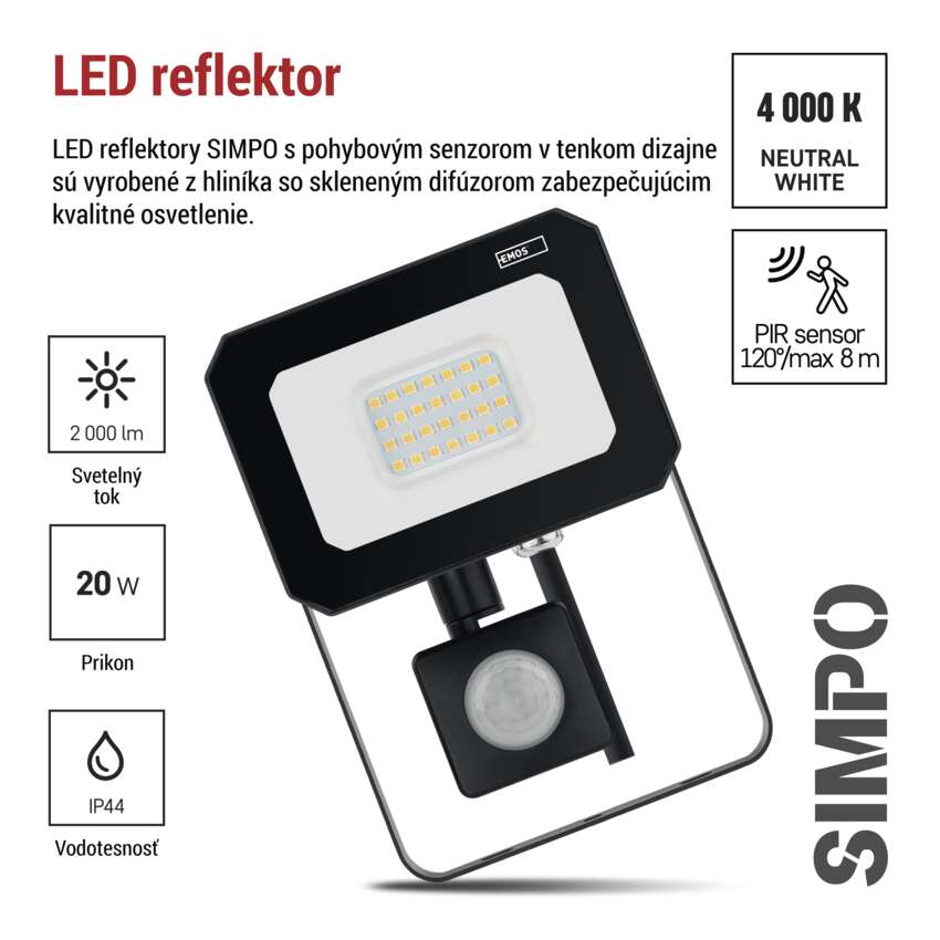 LED reflektor SIMPO s pohybovým čidlom 20 W neutrálna biela