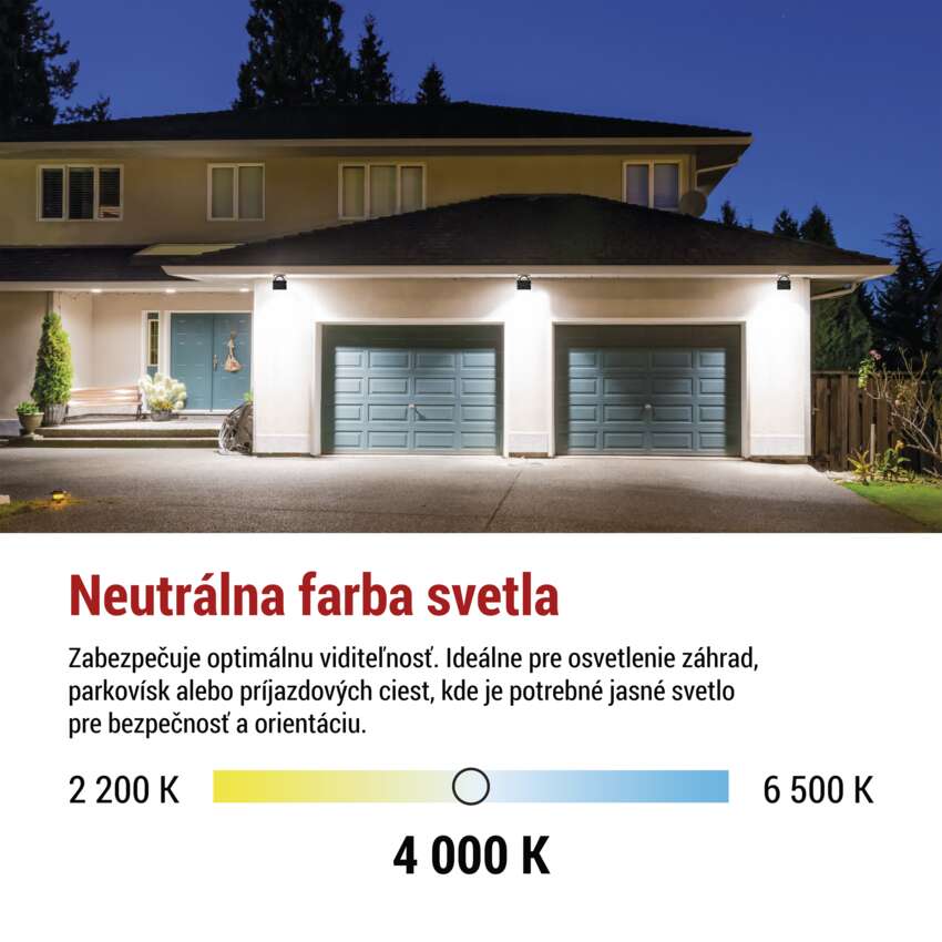 Reflektory rady TAMBO poteší neutrálne bielym svetlom, ktoré je mimoriadne príjemné. Má najbližšie k prirodzenému dennému svetlu. Poznáte ho podľa označenia teploty chromatičnosti 4000 K.