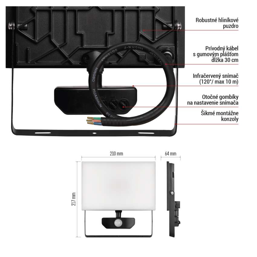 - Šikmá montážna konzola umožňuje lepšie naklonenie reflektora pre jednoduchú montáž
