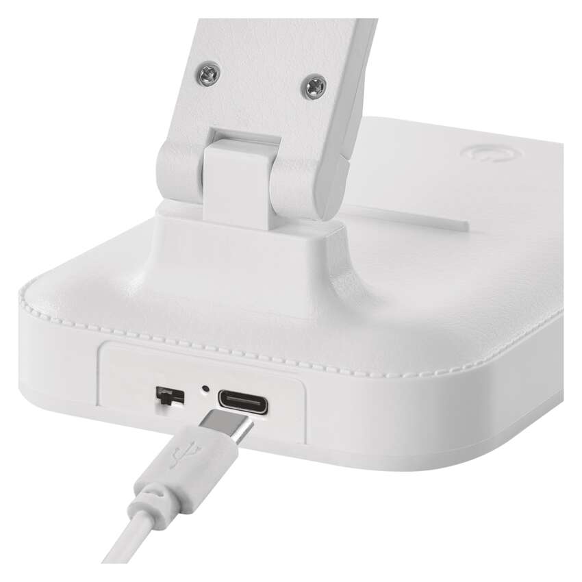 Objavte dokonalú kombináciu elegancie a funkčnosti s našou stolnou lampou AMY. Ponúka nielen štýlový biely dizajn s imitáciou kože, ale aj celý rad praktických funkcií, vďaka ktorým sa stane dokonalým doplnkom vášho pracovného stola alebo nočného stolíka.
