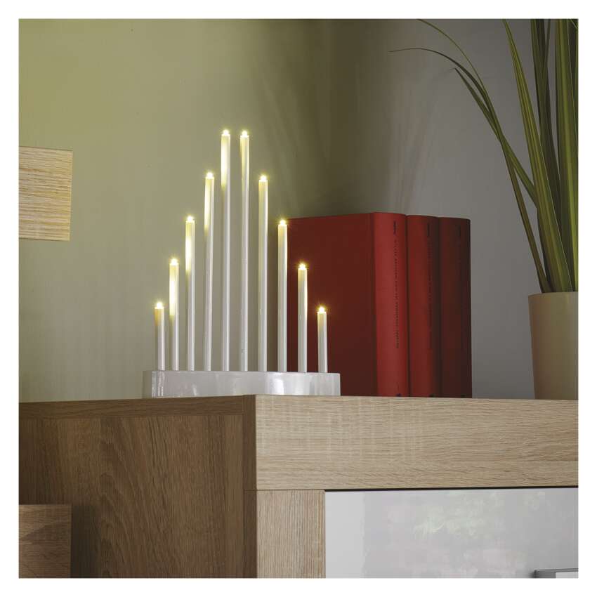 Vianočný LED svietnik s jemným svetlom doladí útulnú atmosféru vášho domova, či už ho umiestnite na sviatočný stôl, parapet alebo poličku. Jeho teplá farba svetla v kombinácii s elegantným dizajnom z neho robí nevšednú dekoráciu určenú nielen na vianočné večery. A čo je dôležité - rozhodne sa nemusíte obávať nechcených požiarov! Ako zdroj svetla používa energeticky úsporné LED diódy namiesto tradičných sviečok, napájaných batériami AA.