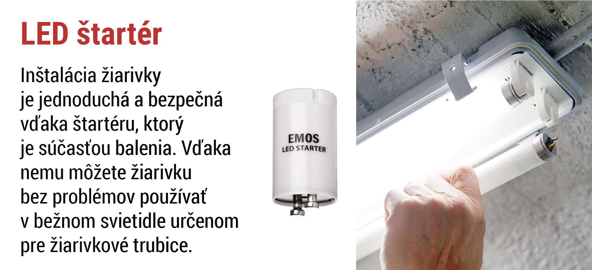 S LED žiarivkami EMOS získate všetko potrebné na okamžitú inštaláciu. LED štartér je už súčasťou dodávky, takže výmena starej žiarivky za novú je rýchla, bezpečná a bez potreby ďalších úprav. Stačí vymeniť pôvodnú trubicu a štartér a za pár minút si môžete užívať moderné, úsporné a spoľahlivé osvetlenie.
