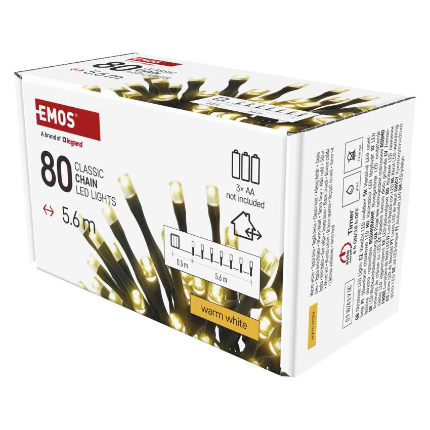 LED vianočná reťaz, 5,6 m, 3x AA, vonkajšia aj vnútorná, teplá biela, časovač