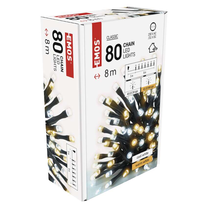 LED reťaze CLASSIC od spoločnosti EMOS sú k dispozícii v niekoľkých tvaroch - klasické reťaze, klastre a stalaktity. Sú nepostrádateľné pre vytvorenie tej správnej slávnostnej atmosféry. Skvele budú vyzerať na tradičnom vianočnom stromčeku, sú vhodné na zdobenie nábytku, zábradlia, trámov alebo dverí v interiéri.Môžete ich použiť aj v exteriéri na osvetlenie kríkov, stromov, pergol, altánkov atď.