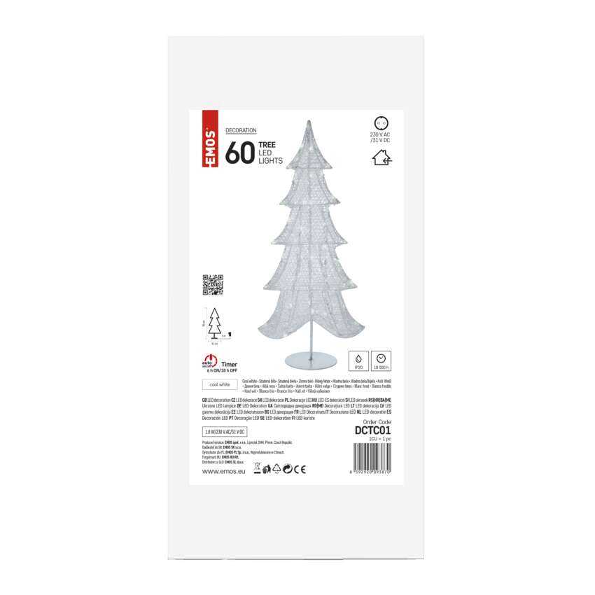 LED vianočný 3D stromček, 90 cm, vnútorný, studená biela, časovač