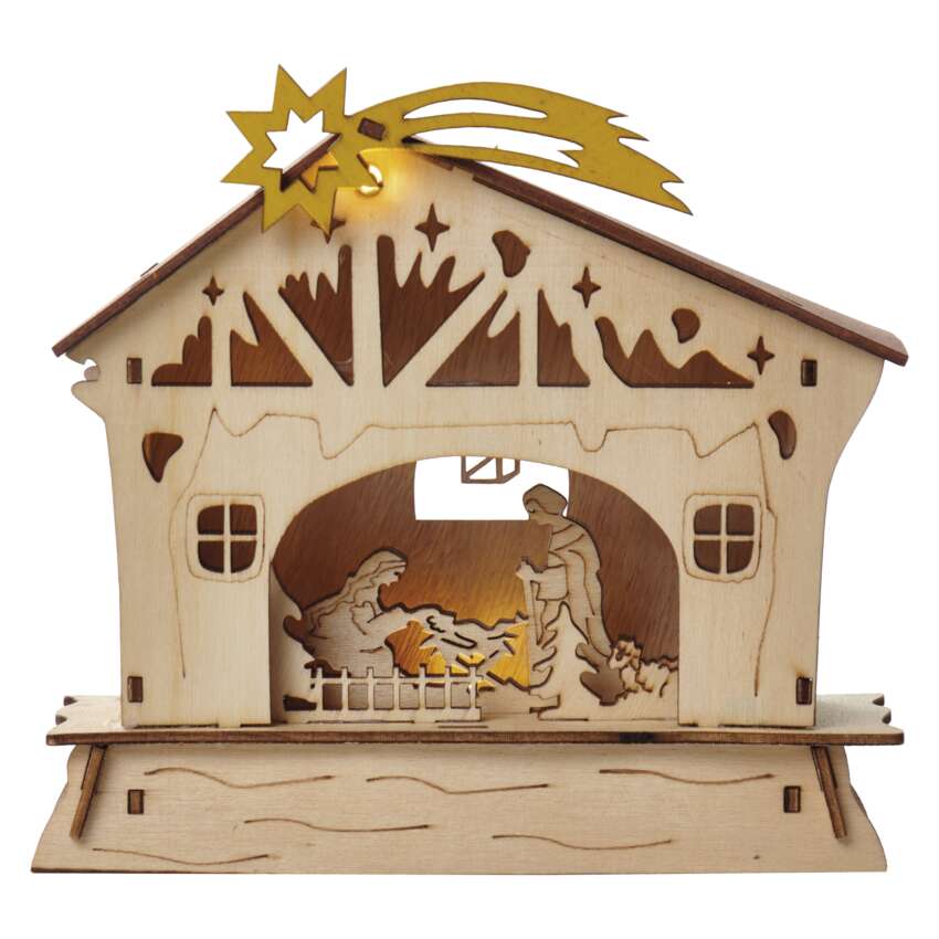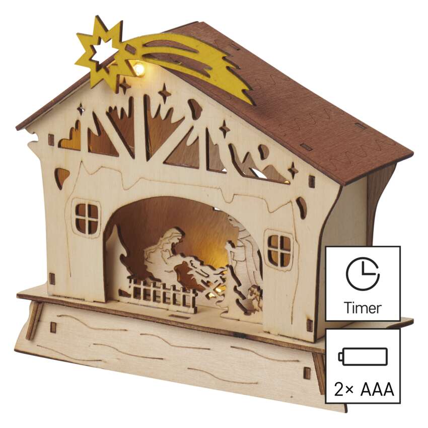 Úvod Vianočné osvetlenie Vnútorné dekoratívne osvetlenie LED vianočný betlehem drevený, 16,5 cm, 2x AAA, vnútorný, teplá biela, časovač