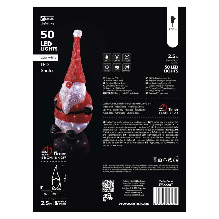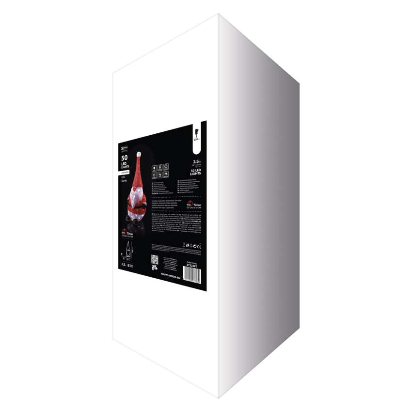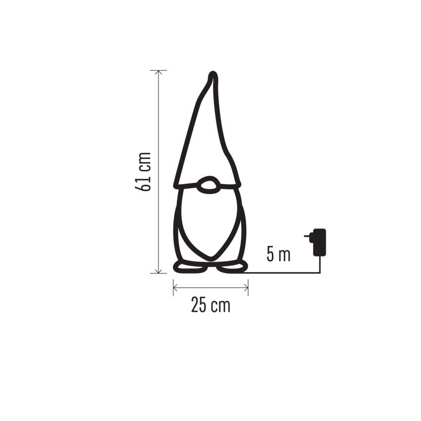 LED vianočný škriatok, 61cm, vonkajšia, studená biela, čas.