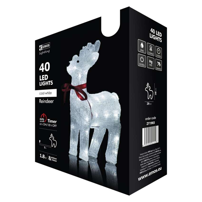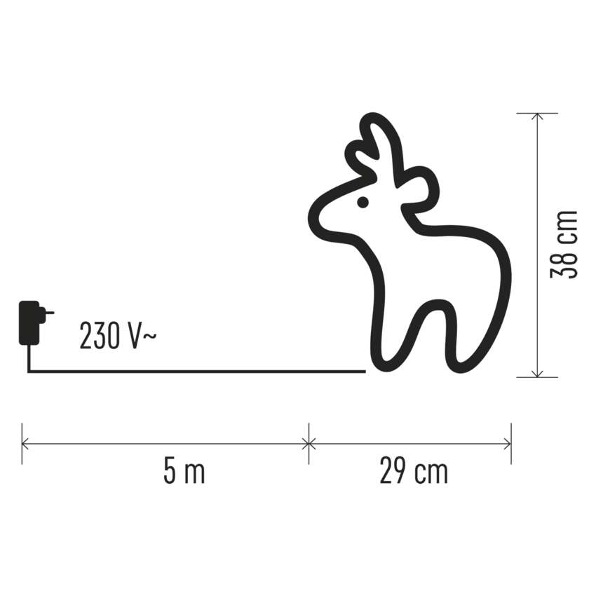 LED vianočný sob, 29×38cm, vonkajší, studená biela, časovač