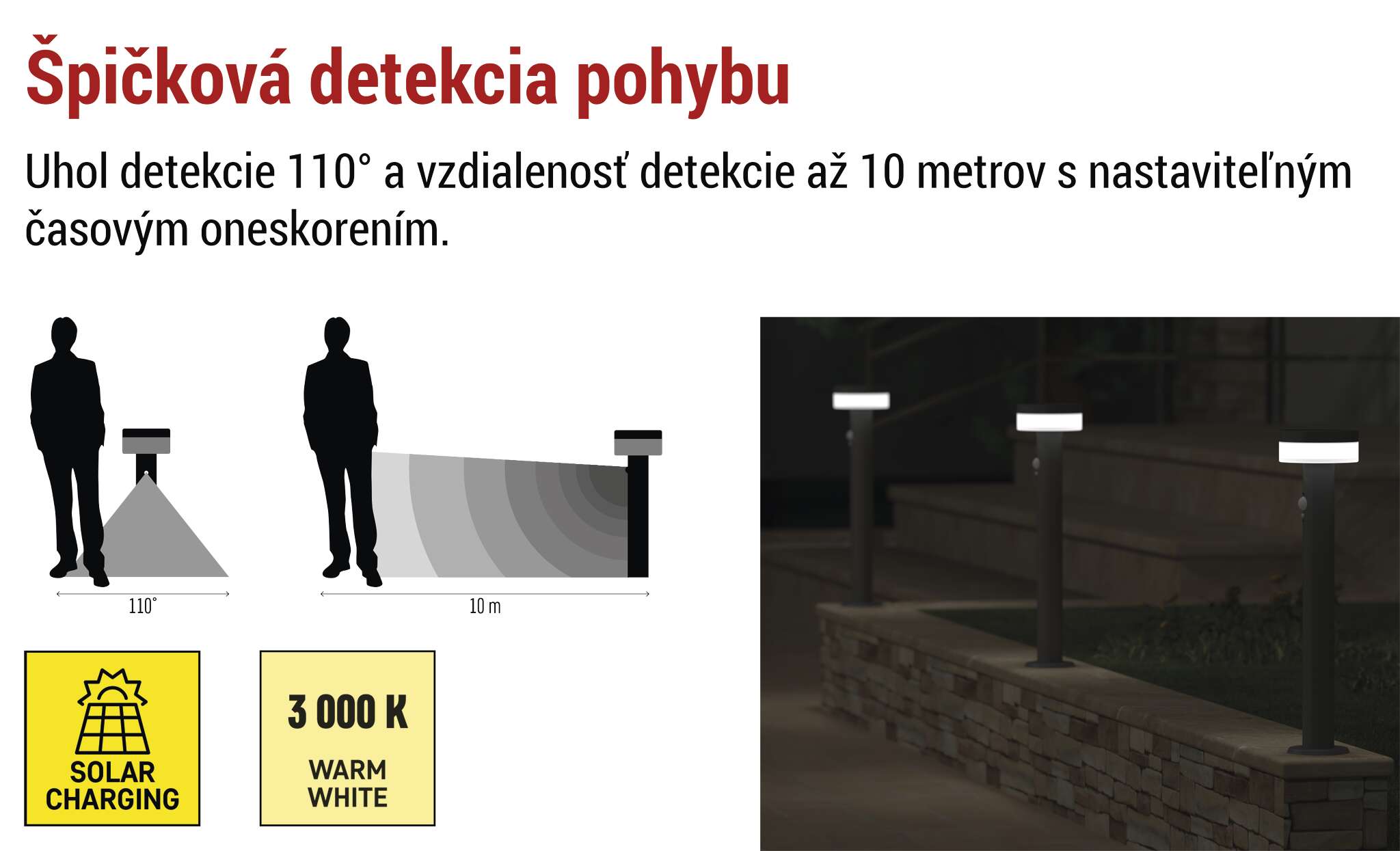 Rada TERION je ideálnou voľbou pre tých, ktorí hľadajú kombináciu úžasného vzhľadu a spoľahlivého výkonu. Jej moderný dizajn dodá každému vonkajšiemu priestoru osobitý charakter. Rad obsahuje jedno nástenné svietidlo a dve stĺpikové svietidlá, všetky s integrovaným snímačom PIR. Poskytujú bezdrôtovú prevádzku bez potreby pripojenia k elektrickej sieti. Sú ideálne pre každého, kto chce mať krásne osvetlenú záhradu s dôrazom na úspornosť a jednoduchosť.