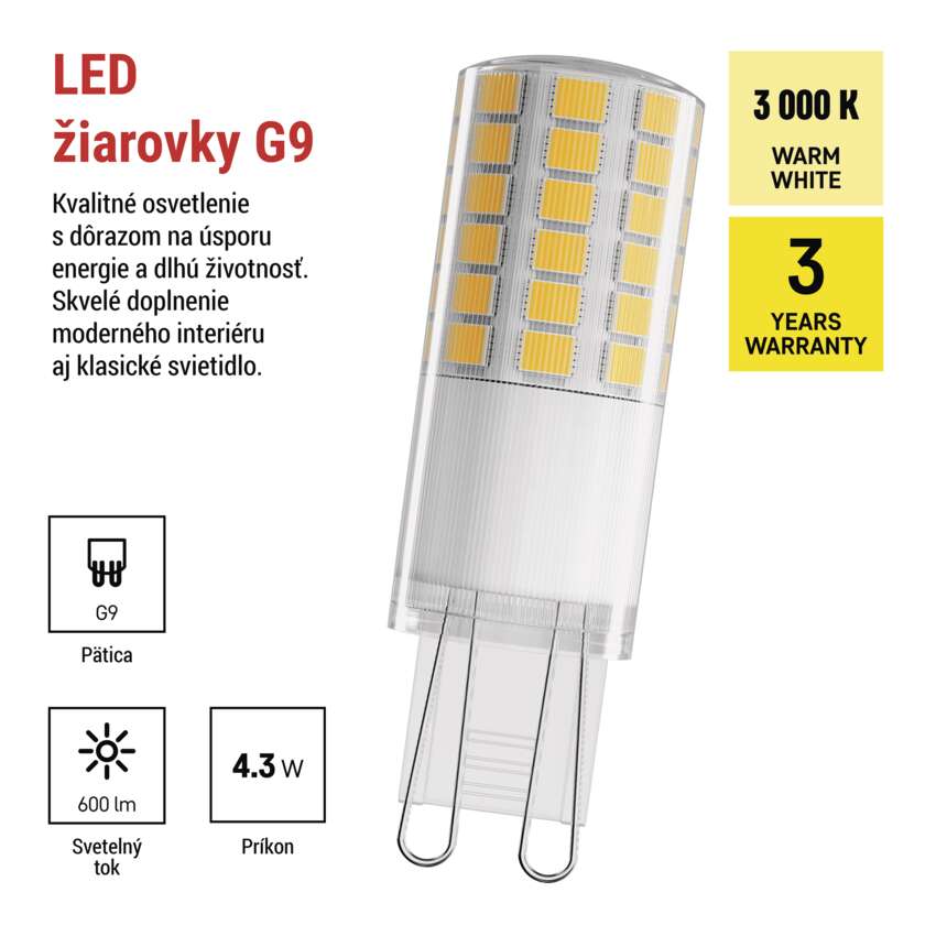 LED žiarovka Classic JC / G9 / 4,3 W (48 W) / 600 lm / Teplá biela