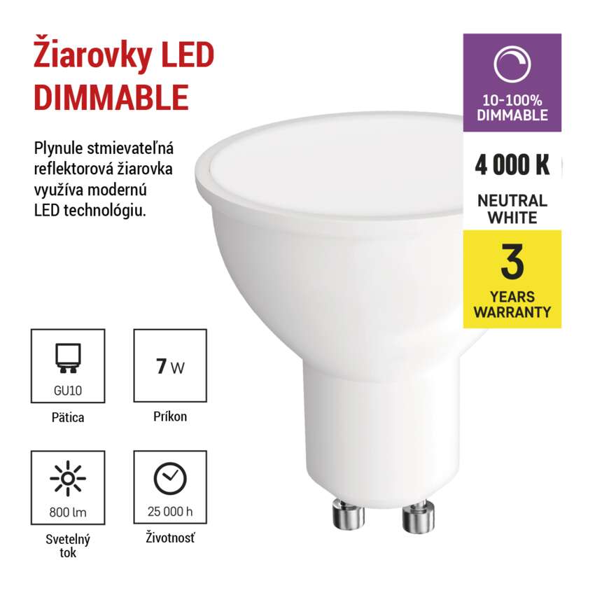 LED žiarovka Classic MR16 / GU10 / 7 W (60 W) / 800 lm / neutrálna biela / stmievateľná