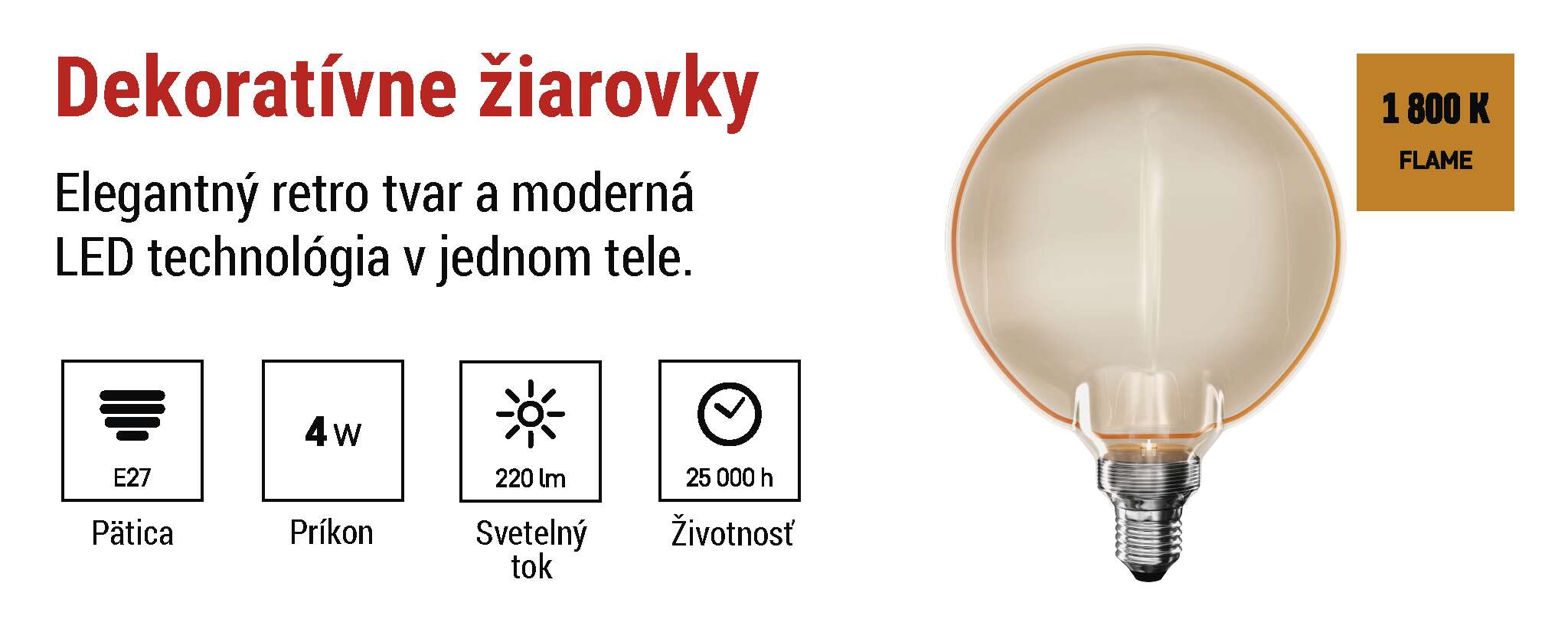 LED žiarovka DECO G130OA / E27 / 4 W (22 W) / 220 lm / flame