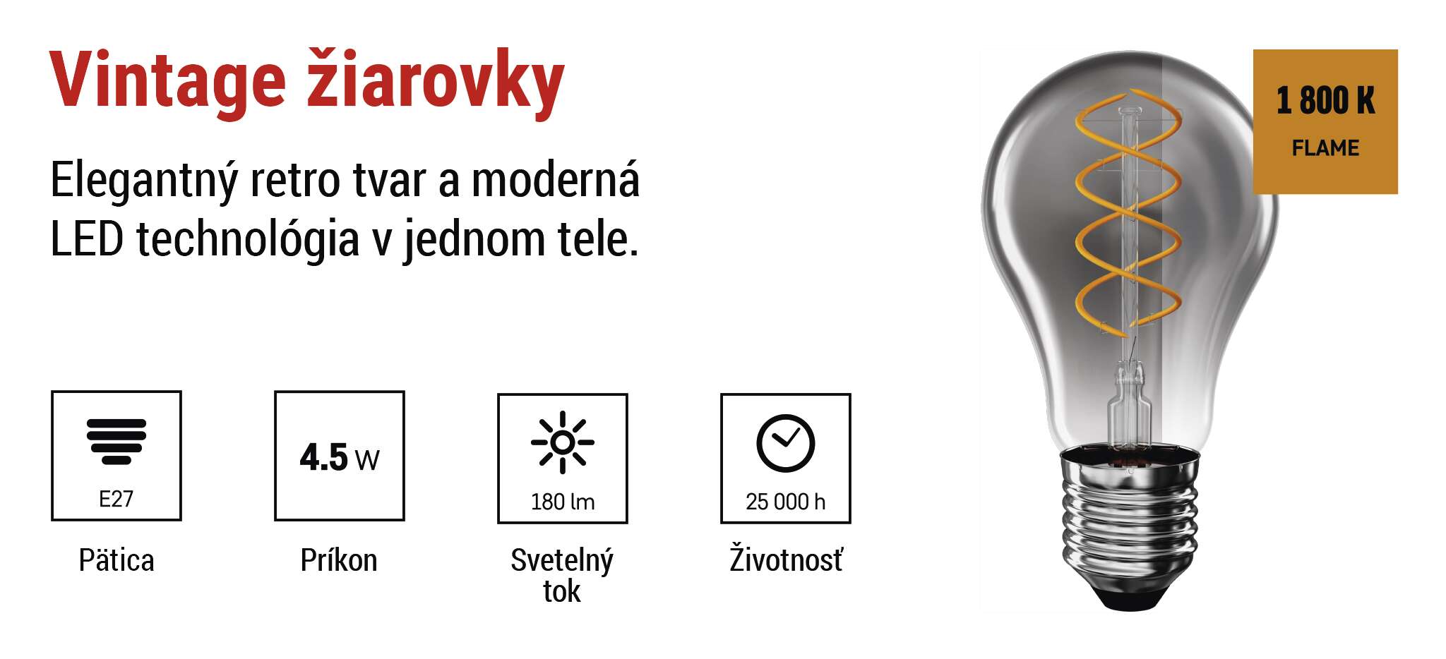 LED žiarovka DECO SMOKED A60 / E27 / 4,5 W (19 W) / 180 lm / flame