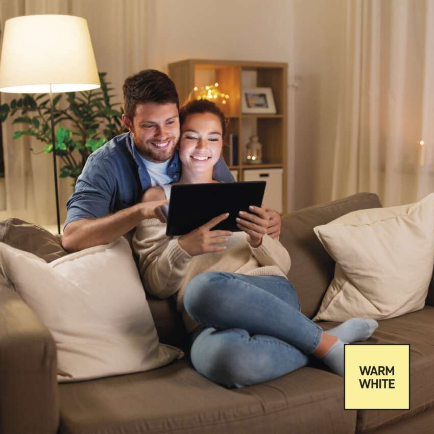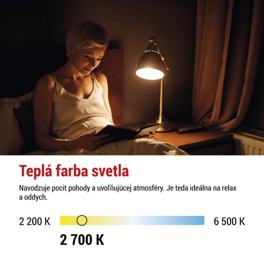 - Teplé biele svetlo je ideálne na večerný relax a uvoľnenie v obývacej izbe alebo spálni
