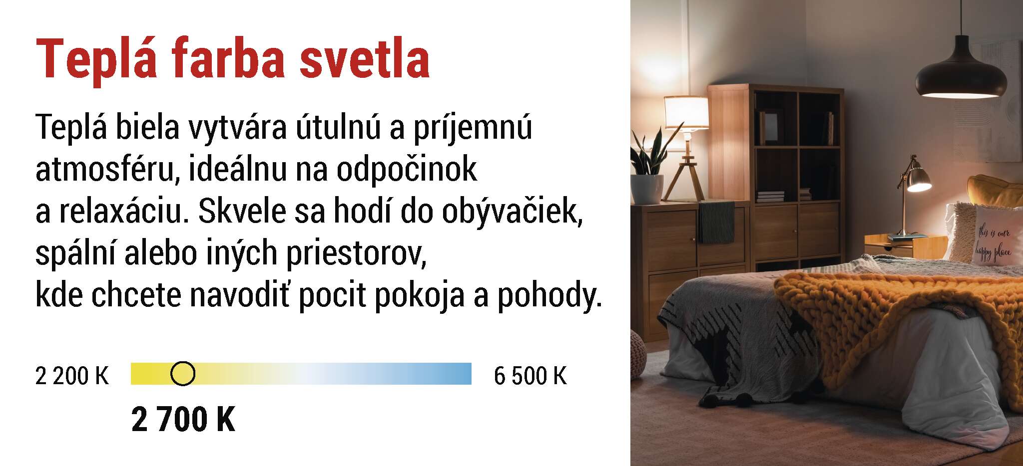 Hrejivé svetlo vytvára tú správnu atmosféru pre chvíle kľudu, relaxácie a domácej pohody. Je mäkké, útulné a prirodzene pôsobí na zmysly - ideálne na večery s knihou, rodinné večere a relaxáciu po náročnom dni. Premení akýkoľvek priestor na miesto, kde sa budete cítiť skutočne ako doma. Dodáva teplý nádych, zvýrazňuje farby a vyčaruje príjemnú náladu, ktorá vás nikdy neomrzí.
