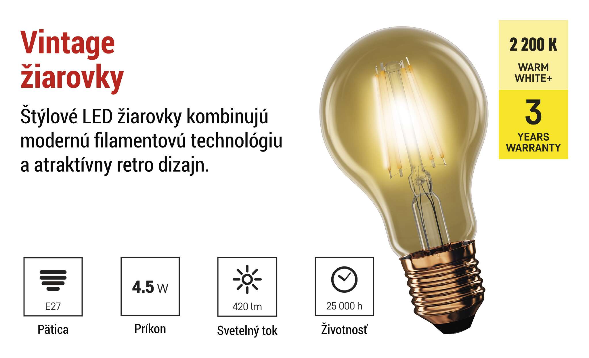 LED žiarovka Vintage A60 / E27 / 4,5 W (40 W) / 420 lm / Teplá biela