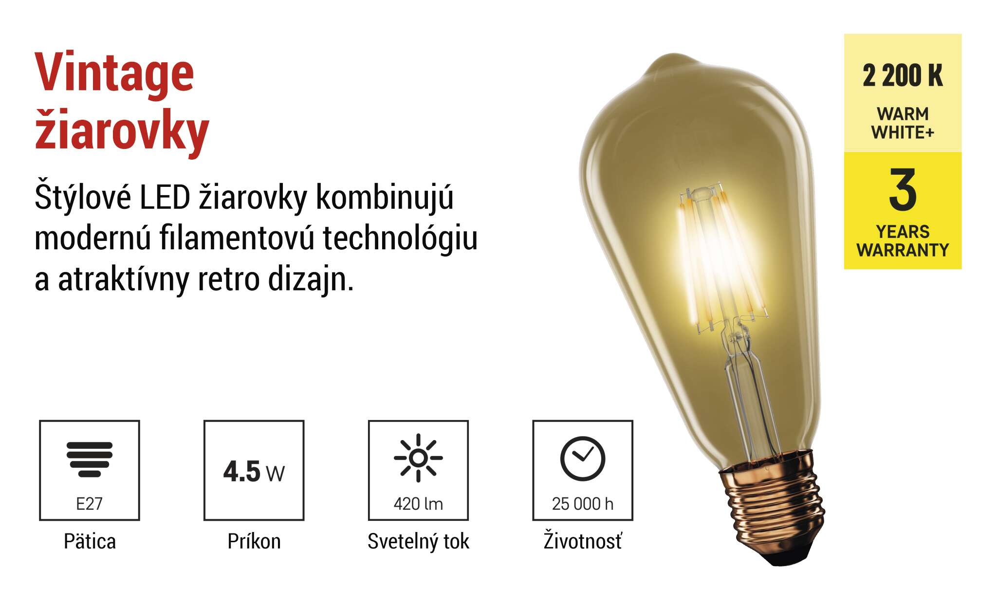 Objavte čaro teplého svetla s našimi štýlovými LED žiarovkami, ktoré spájajú modernú úsporu energie s klasickým dizajnom. S teplotou chromatickosti 2 200 K vytvárajú teplú a útulnú atmosféru, ktorá je ideálna pre váš domov a komerčné priestory. Vďaka vysokej svetelnej účinnosti a nízkej spotrebe sú dokonalou náhradou za tradičné 20 až 40 W žiarovky.