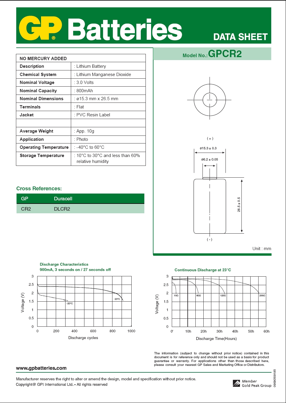 Extrémne široký rozsah prevádzkových teplôt od -40 °C do +60 °C dáva možnosť použitia takmer pri akýchkoľvek vonkajších podmienkach. Určené najmä pre náročné fotografické a ďalšie zariadenia ako napr. psie obojky. Podáva vynikajúci výkon pri maximálnom odberu prúdu - až 7× výkonnejšia ako bežná alkalická batéria rovnakej veľkosti. Extrémne dlhá skladovateľnosť až 10 rokov.