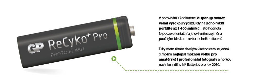 Tieto batérie boli špeciálne vyvinuté pre použitie vo fotoaparátoch a bleskoch. Spájajú najmodernejšie výrobné technológie za účelom dosiahnutia optimálneho výkonu pri fotení. Vynikajú super-rýchlou odozvou pre obstaranie viac fotografií v krátkom intervale, takže neprídete o žiadny z krásnych momentov počas Vašej rodinnej, kultúrnej, či športovej akcie. Naviac ich môžete použiť ihneď po zakúpení a rozbalení , bez nutnosti predchádzajúceho nabíjania. V porovnaní s konkurenciou disponujú tiež veľmi vysokou výdržou, kedy na jedno nabitie zaobstaráte až 1 400 snímkov. Táto hodnota je len orientačná a je ovplyvnená najmä použitým bleskom, alebo technikou fotenia. Vďaka všetkým týmto skvelým vlastnostiam ide o možno najlepšiu možnú voľbu pre amatérskych i profesionálnych fotografov a horúcu novinku z dielne GP Batteries na rok 2016.Výhody produktu