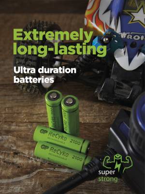 Nabíjacie batérie GP ReCyko sa pýšia extrémne vysokou výdržou. Patia k batériám s najvyššou bežne dostupnou kapacitou na trhu. Vďaka tomu, že vás nesklamú ani pri nadmernej záťaži, si ich obľúbite pri celej rade činností.