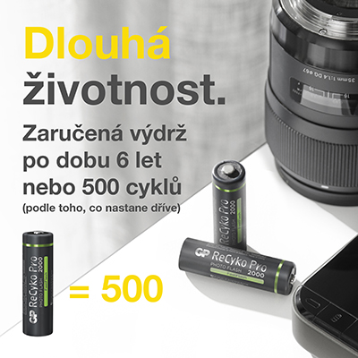 Používanie nabíjacích batérií GP ReCyko Pro Photo je pohodlné, ekologické a finančne výhodné. Batérie vám totiž vydržia niekoľko rokov, bez oslabenia svojho výkonu. Aj po 500 nabitiach a vybitiach si udržia väčšinu svojej kapacity. Pri porovnaní s ekvivalentnou dobou používania jednorázových batérií tak ušetríte nemalé finančné prostriedky.