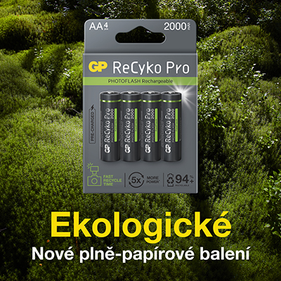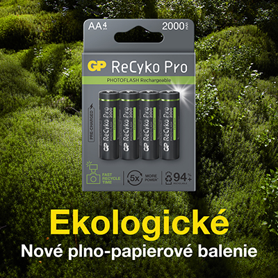 Okrem toho, že sú batérie ReCyko plne spoľahlivé, vás poteší aj ich minimálna ekologická záťaž. Batérie GP ReCyko sú totiž vyrobené tak, aby boli šetrné k životnému prostrediu. Pri výrobe sú využívané už recyklované zdroje. Recyklovateľná je aj väčšina materiálov, z ktorých sú batérie vyrobené. Spoločnosť GP naviac myslela aj na ekologické papierové balenia. Batérie GP sú tak skvelým výrobkom pre tých, ktorým na prírode záleží.