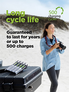 Nabíjacie batérie ReCyko Pro Photo vás nadchnú už pri prvom použití. Sú totiž prednabité z výroby, a tak ich po rozbalení môžete okamžite použiť. Milo vás prekvapí aj dlhá výdrž batérií po viac ako 500 cykloch vybitia a nabitia. Nabíjacie batérie ReCyko Pro Photo sa stanú vašim spoľahlivým pomocníkom pri amatérskom aj profesionálnom fotení.
