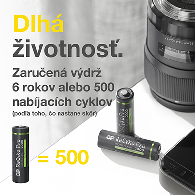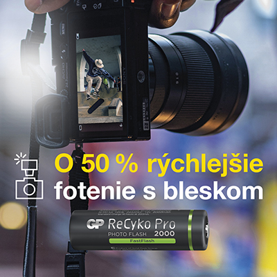 Každý fotograf túží po profesionálnom náradí, na ktoré sa bude mocť plne spoľahnúť. Nabíjacie tužkové batérie GP ReCyko Pro Photo boli vyvinuté špeciálne pre použitie vo fotoaparátoch a externých bleskoch. Spájajú najmodernejšie výrobné technológie, vďaka ktorým môžete aj vy dosiahnuť pri fotení maximálny výkon. Sú totiž prispôsobené náročným požiadavkom používateľov a fotoaparát vďaka nim dokáže poskytnúť ešte rýchlejšiu odozvu. Už vám tak nikdy neunikne žiadny jedinečný okamžik a všetko zvládnete bez problémov na svojichch fotografiách pohotovo zachytiť.