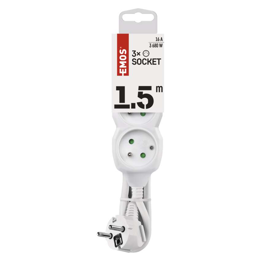 Predlžovací kábel 1,5 m / 3 zásuvky / biely / PVC / 1 mm2