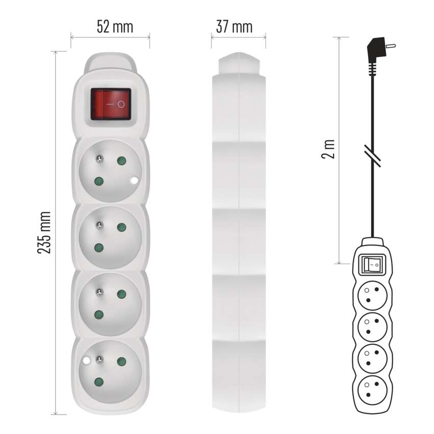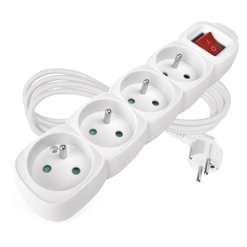 Predlžovací kábel 2 m / 4 zásuvky / s vypínačom / biely / PVC / 1 mm2