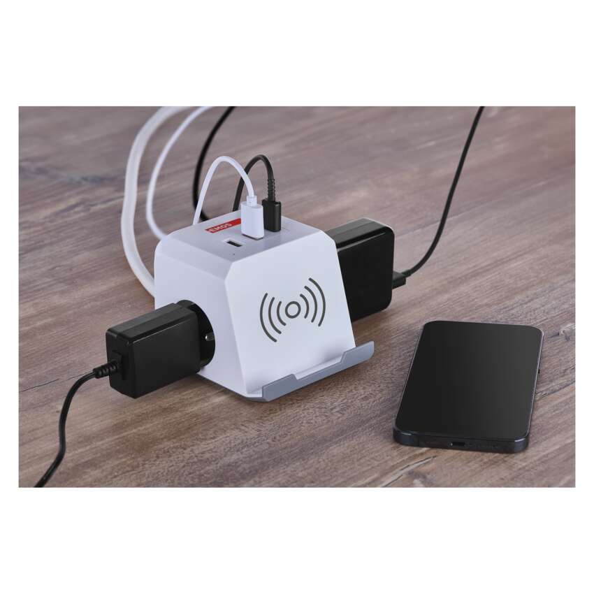 Elegantný biely dizajn v modernom tvare kocky kombinuje dve klasické zásuvky s integrovanými portami USB-A a USB-C a praktickou 10 W bezdrôtovou nabíjačkou Qi. Skvelé pre každého, kto chce mať všetky svoje zariadenia pripojené, nabité a zároveň bezpečné vďaka detským poistkám.