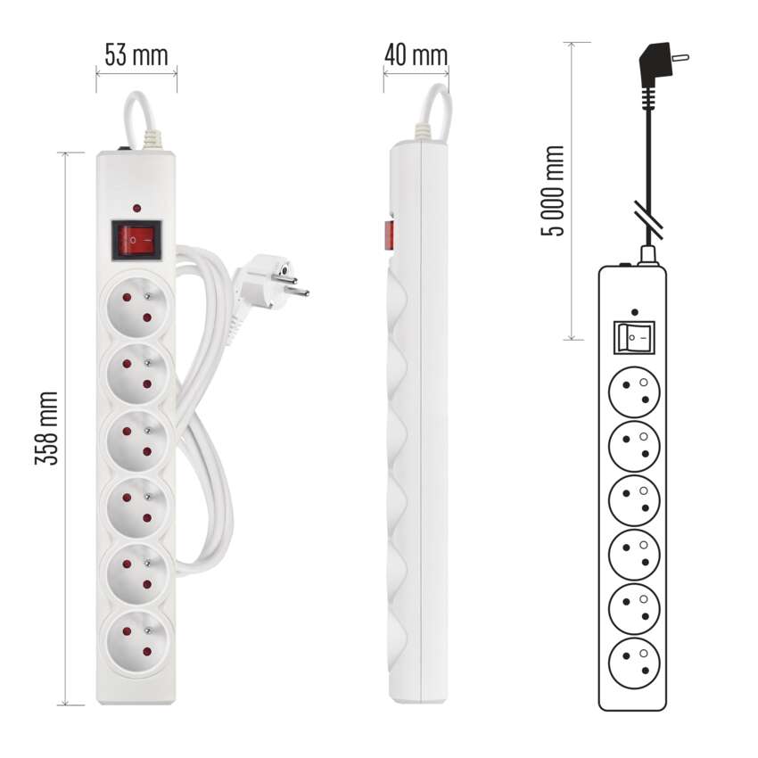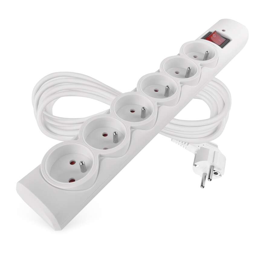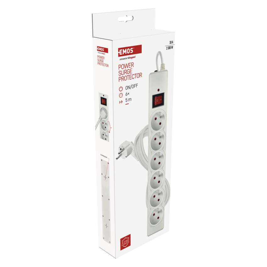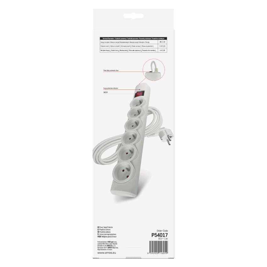 Prepäťová ochrana – 6 zásuviek, 5 m, biela