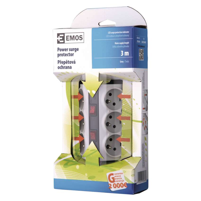 2 podsvietené sieťové vypínače, každý umožňuje vypnutie/zapnutie 3 zásuviek. 3 možné smery usporiadania sieťového prívodu. LED indikácia prepäťovej ochrany. Súčasťou balenia protišmykové gumové nožky.Parametre