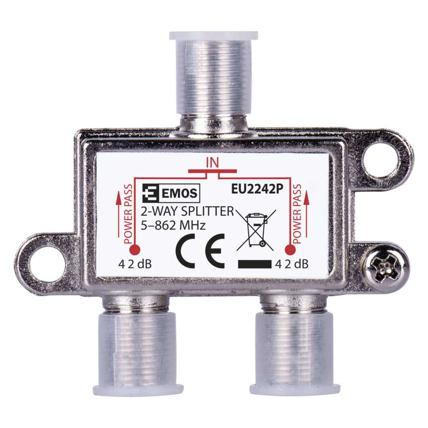 Dvojnásobný rozbočovač TV/R signálu. Rozbočovač je priechodný pre jednosmerné napájacie napätie na všetky výstupy signálu a umožní napájanie predzosilňovača umiestneného v anténe. Výstupy sú vybavené ochranou diódou.Parametre