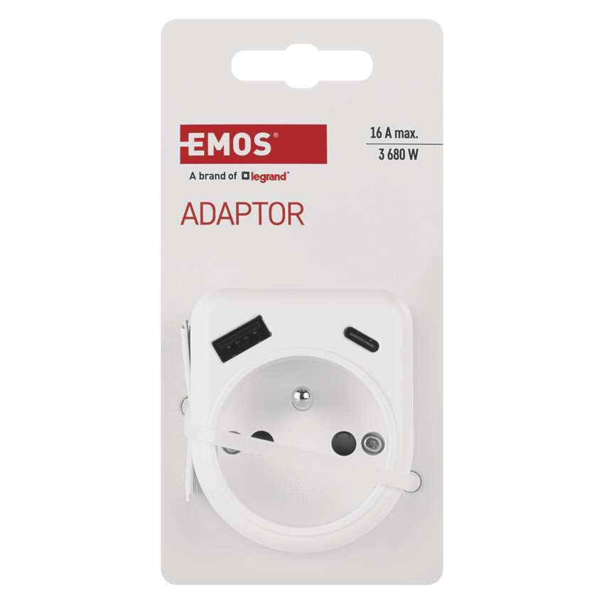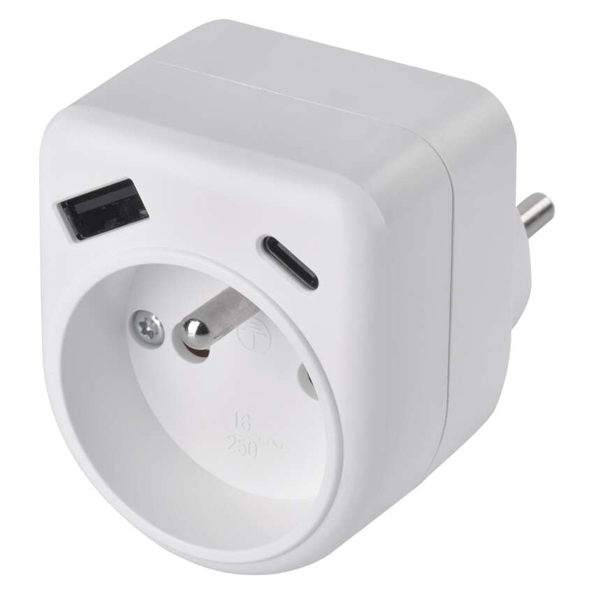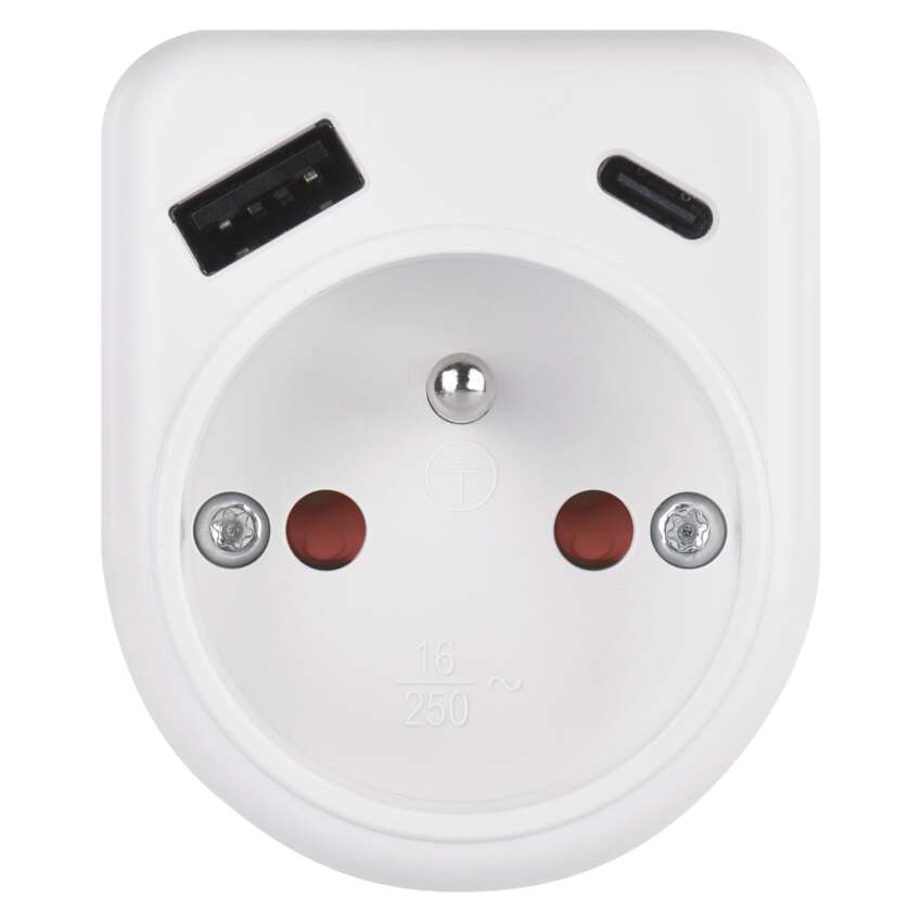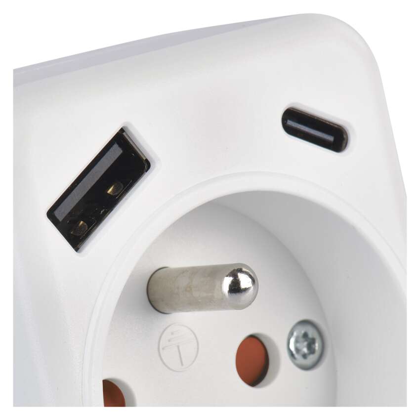 Rozbočovacia zásuvka 1×, 1×USB-A+1×USB-C, biela