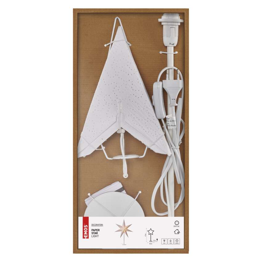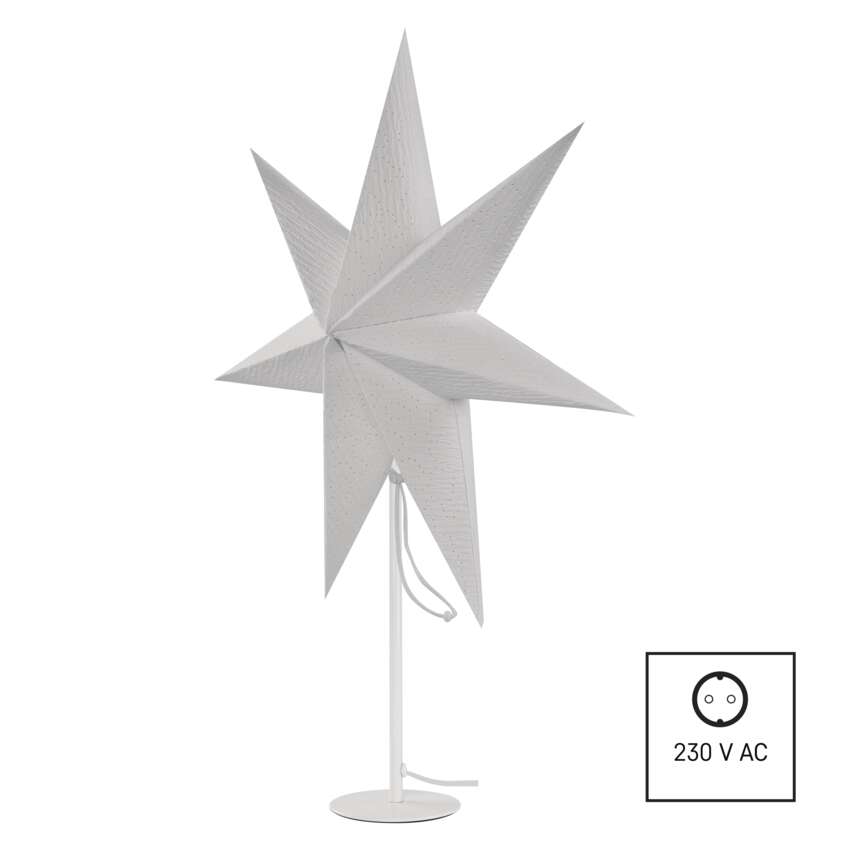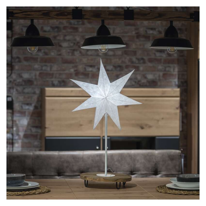 Ako navodiť tú správnu vianočnú atmosféru a vytvoriť útulný domov? Pomôže vám s tým papierová hviezda na stojane, ktorá bude vyzerať skvele v každom interiéri na stole, komode alebo okennom parapete.Svietidlo Star má 1,6 metra dlhý napájací kábel a vďaka pätici E14 je na vás, aby ste sa rozhodli, ktorú farbu žiarovky použijete. Ak si napríklad vyberiete bielu hviezdu a vložíte do nej žiarovku s teplou bielou farbou svetla, rozsvieti sa krásnym zlatým svetlom, ktoré bude žiariť cez malé otvory vyrazené v hviezde. Výhodou tejto dekorácie je aj jej skladnosť, hviezdu jednoducho zložíte jednoduchým utiahnutím šnúrky.