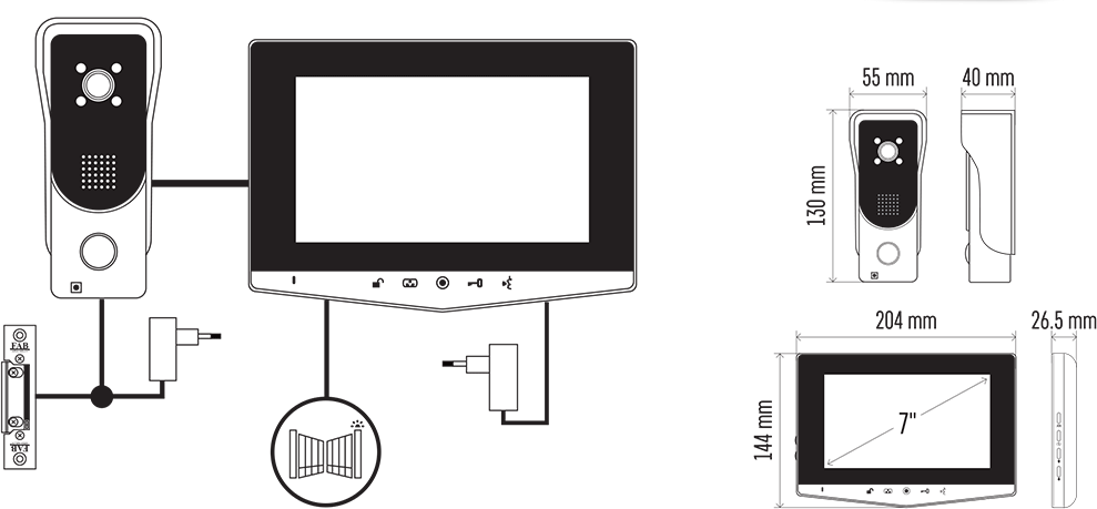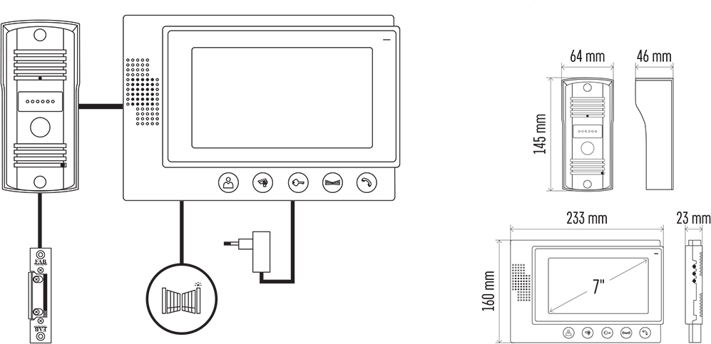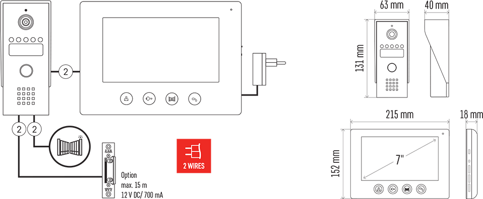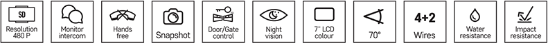 Okrem toho, že videotelefón so širokým uhlom záberu zvládne perfektne zobraziť prichádzajúceho za šera či v noci, pripojíte na 7 “ farebnú obrazovku s vysokým rozlíšením aj ovládanie vchodových dverí či pojazd brány. Pomocou jediného tlačidla tak na diaľku jednoducho otvoríte prichádzajúcemu bez toho, aby ste museli opúšťať pohodlie svojho bytu.