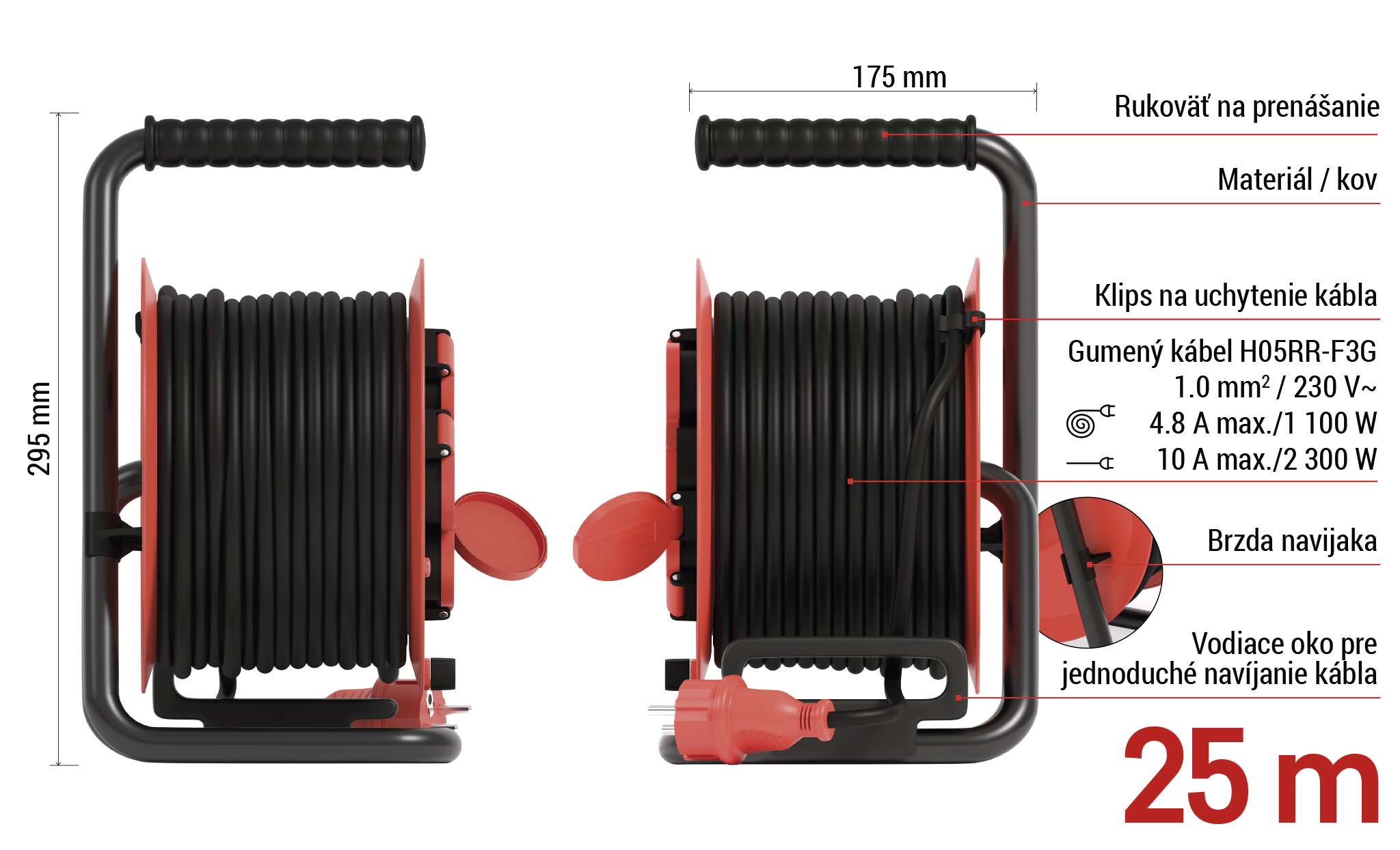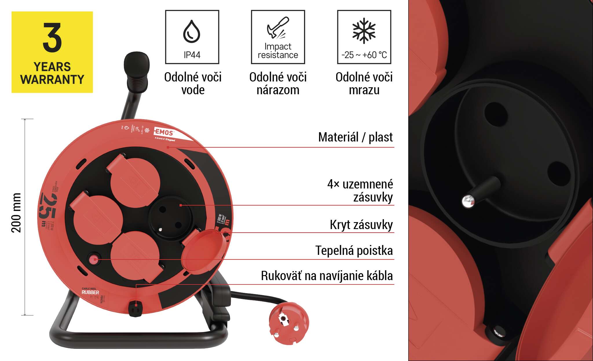 14pt;">odolný voči hrubej manipulácii, vode, nízkym a vysokým teplotám od -25 °C do +60 °CVodiace očko uľahčuje navíjanie a odvíjanie kábla Termická poistka chráni pred prehriatím Predĺžená 3-ročná záruka Vhodná na použitie v vonkajšom a vnútornom prostredí