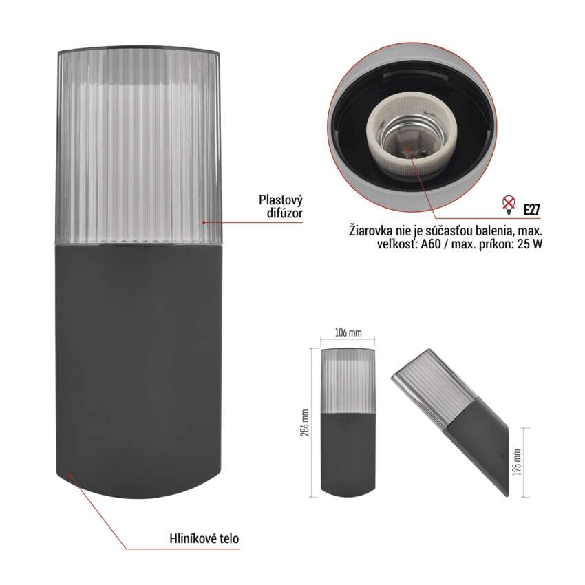 Záhradné nástenné svietidlo LANA, 10,6 x 8,8 x 28,6 cm, 1 x E27, 25 W
