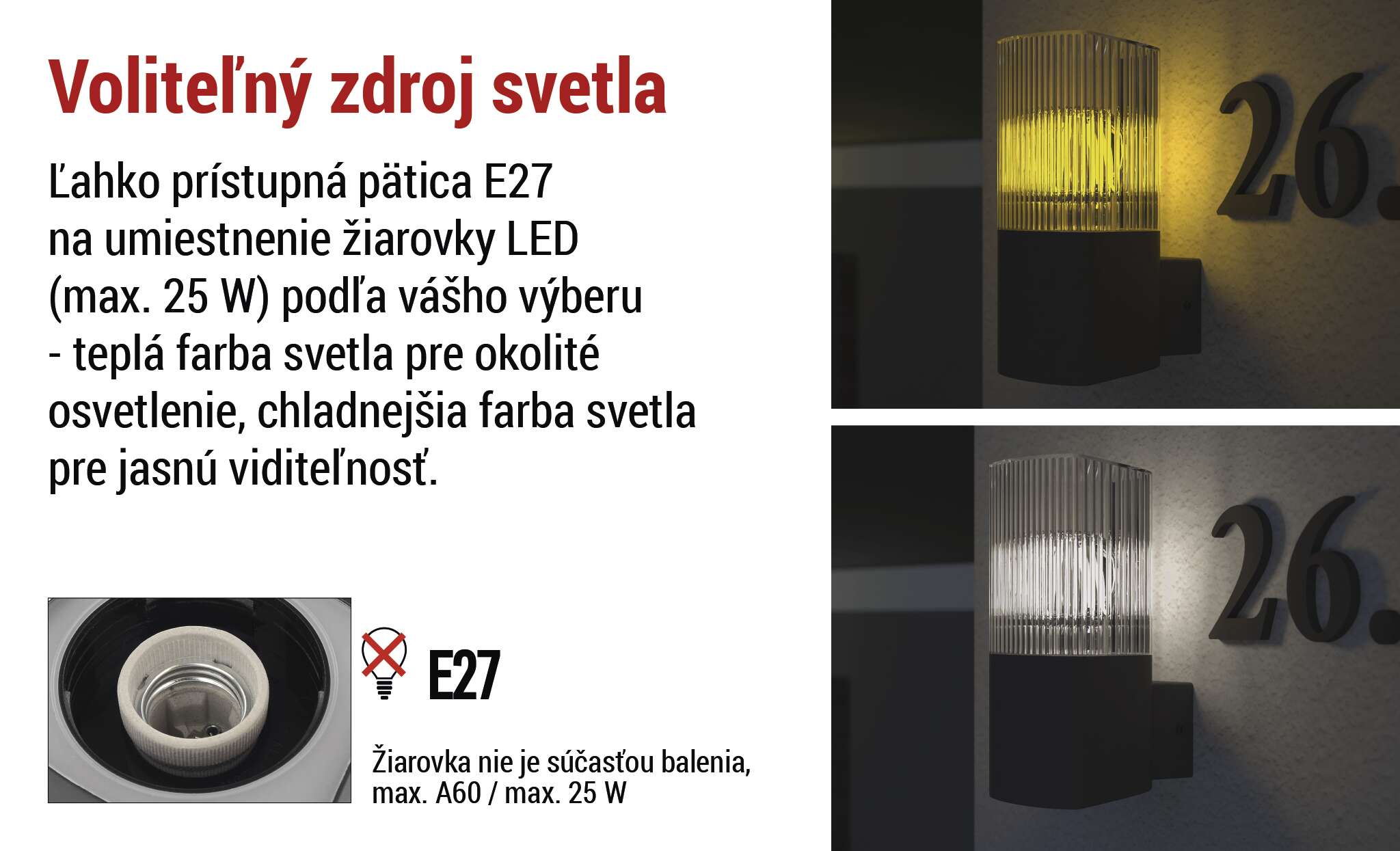 Záhradné nástenné svietidlo LANA, 11,7 x 10,6 x 21,8 cm, 1 x E27, 25 W