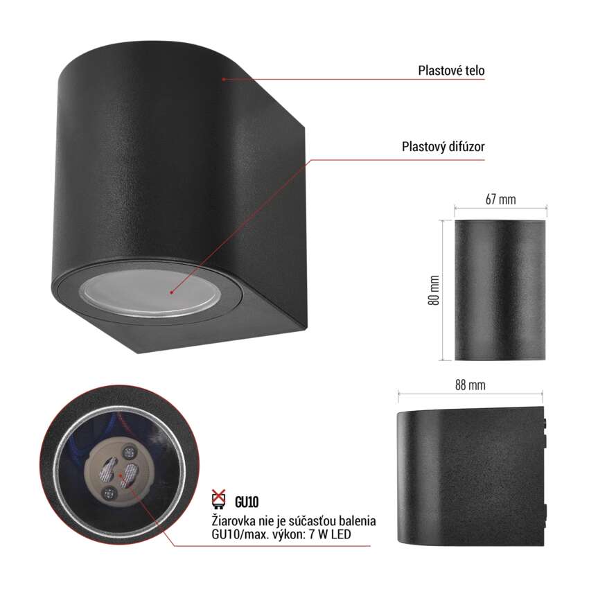Záhradné nástenné svietidlo OCULUS, 8,8 x 6,7 x 8 cm, 1 x GU10, 1× 7W