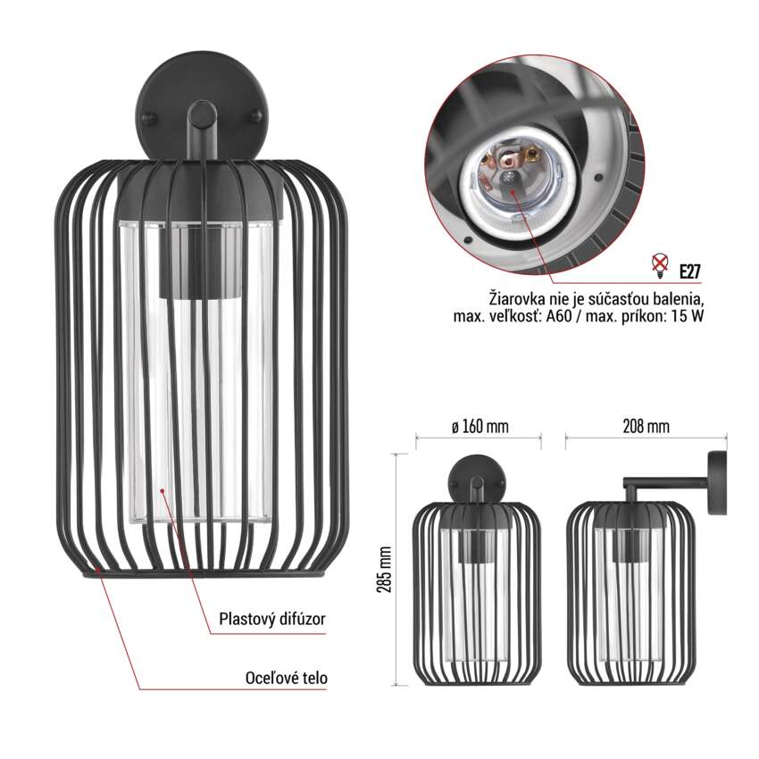 Zahradné nástenné svietidlo SALVIA, 20,8 x 16 x 28,5 cm, 1 x E27, 15 W